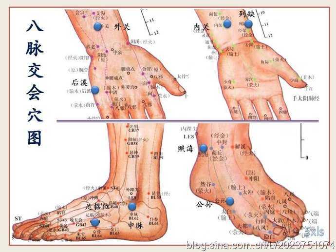 【出处】:八脉交会穴是金元时代窦汉卿得于宋子华之手,又称“窦氏八穴”,也就是奇经八脉与十二正经脉气相通的八个腧穴。它是目前常用临床特定穴的重要组成部分。本歌最早见于《医经小学》卷三,题目为“经脉交会八穴一首”,其后在《针灸大全》和《针灸聚英》、《针灸大成》等书中均有记载。医`学教育网搜集整理本歌诀将奇经八脉与十二经脉在四肢相通的八个腧穴及其主治病症编成歌诀,便于诵读和应用。此八穴既能治奇经病,又能治正经病,临床上常采用上下相应的配穴法,如公孙配内关等。熟记本歌诀对临床及研究灵龟八法均有帮助。