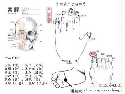 退烧宜少商,降压用大椎;中风十宣穴,救心刺中冲。
